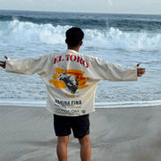 Kimono artesanal confeccionado en manta 100%, un textil natural, fresco y ligero. Diseño abierto al frente que aporta comodidad y versatilidad, con estampado serigrafiado en la espalda, realizado mediante técnica artesanal que garantiza durabilidad y carácter único.